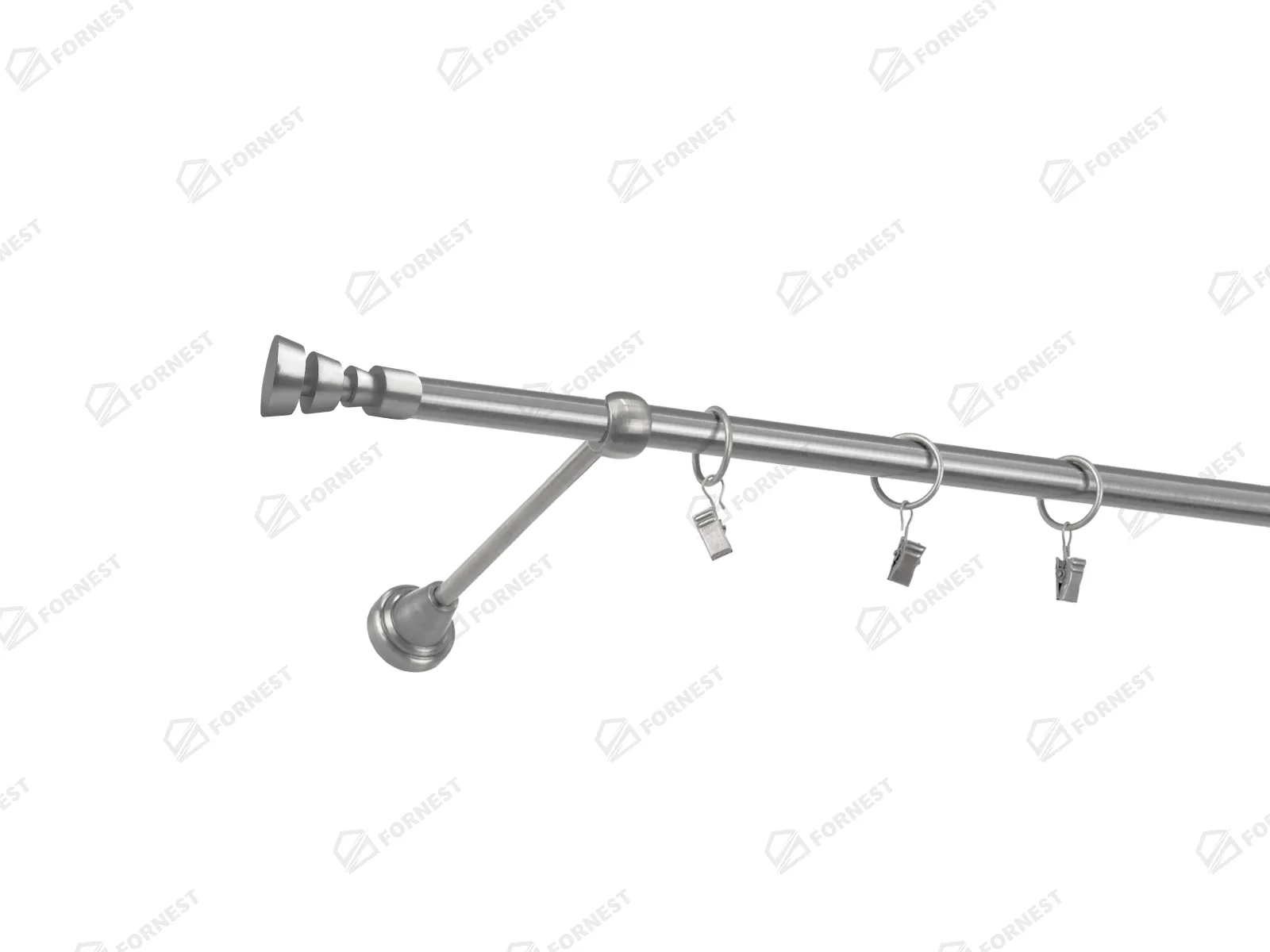 Dĺžka 1000 mm - tyč 16mm - 1000mm - 1ks, držiak - 2ks, koncovka - 2ks, krúžok so štipcom - 9ks (pri výbere parametra príslušenstvo s krúžkami so štipcom), skrutky a hmoždinky na montáž