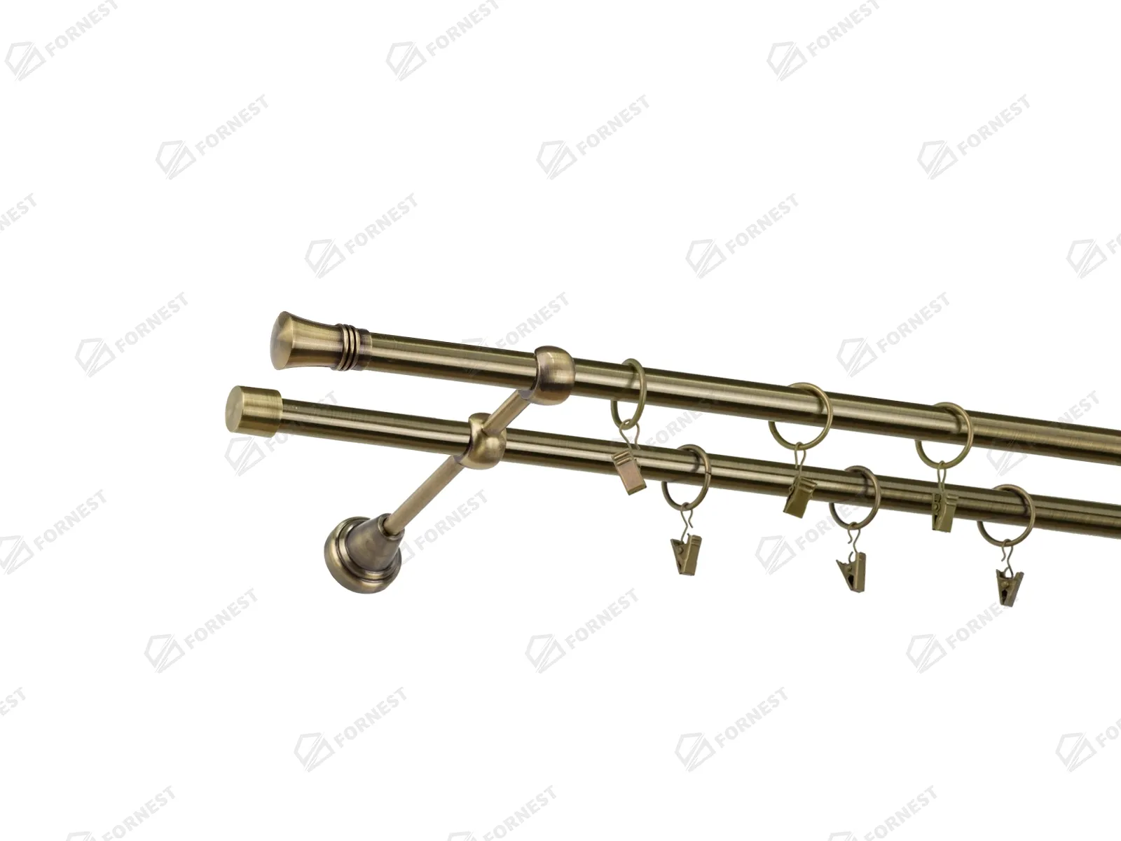 Dvojradová garniža s povrchovou úpravou - odtieň antik (matné zlato). Celokovové garniže s kvalitnou povrchovou úpravou - galvanické pokovovanie. Galvanické pokovovanie zabezpečuje vyššiu povrchovú tvrdosť, zvýšenú dolnosť voči poškriabaniu, hladký povrch. Dodávané sú v kompletoch.