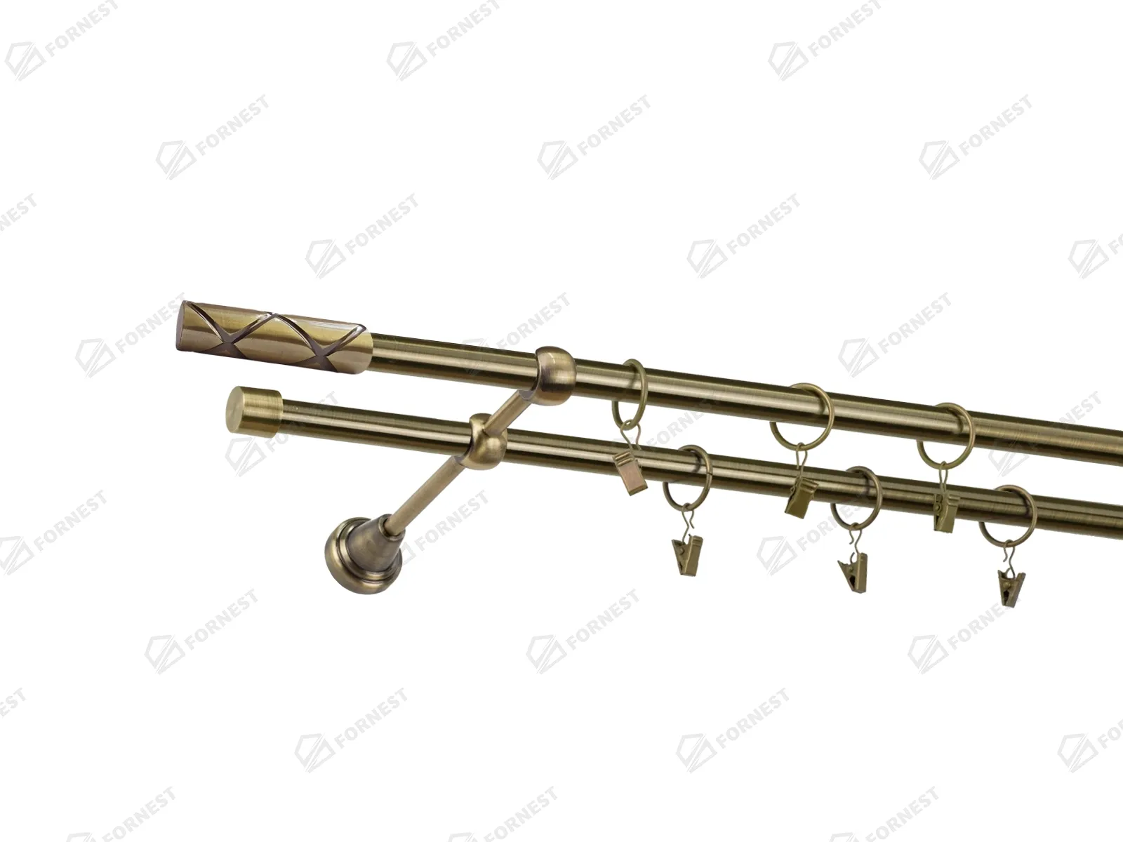 Dvojradová garniža s povrchovou úpravou - odtieň antik (matné zlato). Celokovové garniže s kvalitnou povrchovou úpravou - galvanické pokovovanie. Galvanické pokovovanie zabezpečuje vyššiu povrchovú tvrdosť, zvýšenú dolnosť voči poškriabaniu, hladký povrch. Dodávané sú v kompletoch.