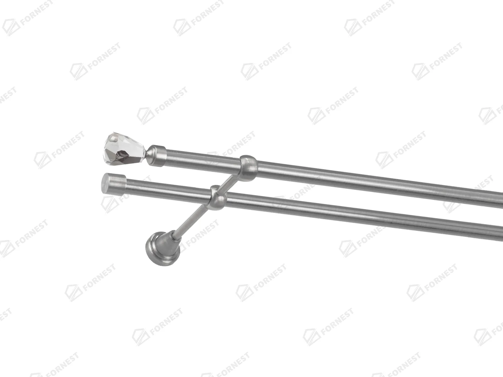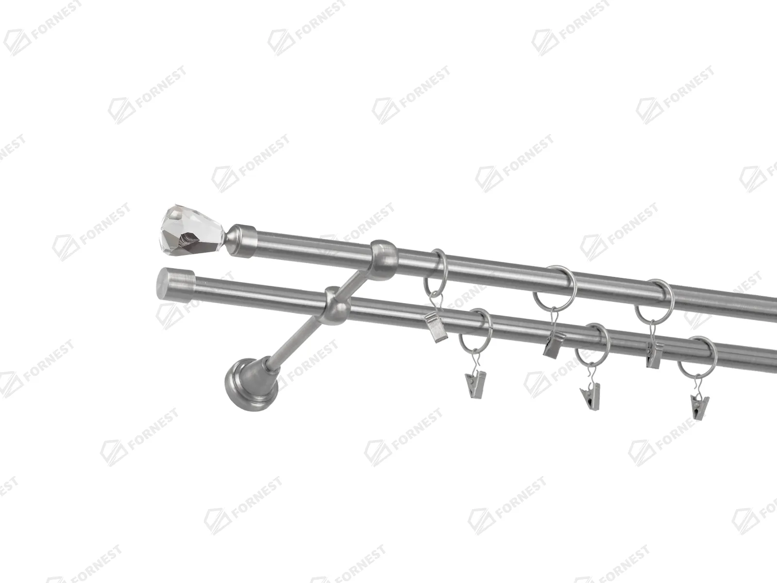 Dvojradová garniža s povrchovou úpravou - odtieň satin-nikel (matné striebro). Celokovové garniže s kvalitnou povrchovou úpravou - galvanické pokovovanie. Galvanické pokovovanie zabezpečuje vyššiu povrchovú tvrdosť, zvýšenú dolnosť voči poškriabaniu, hladký povrch. Dodávané sú v kompletoch.