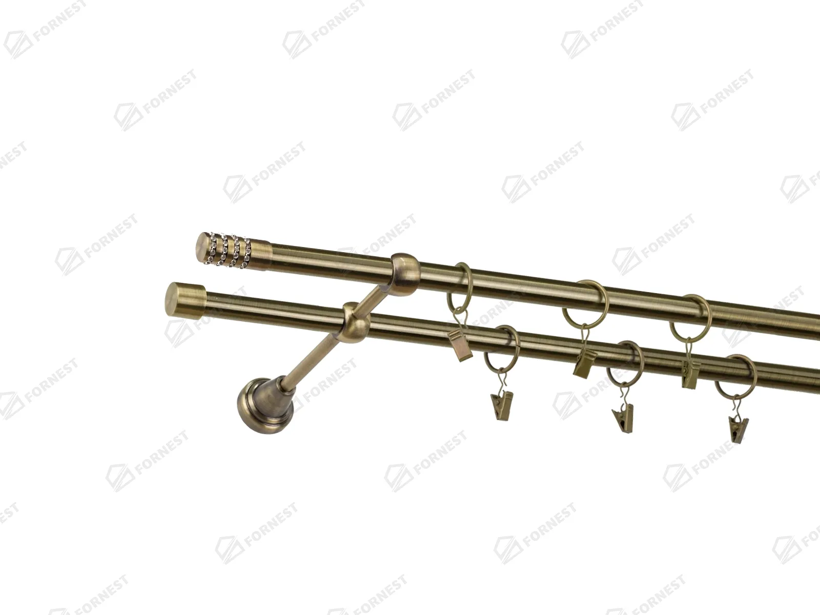 Dvojradová garniža s povrchovou úpravou - odtieň antik (matné zlato). Celokovové garniže s kvalitnou povrchovou úpravou - galvanické pokovovanie. Galvanické pokovovanie zabezpečuje vyššiu povrchovú tvrdosť, zvýšenú dolnosť voči poškriabaniu, hladký povrch. Dodávané sú v kompletoch.