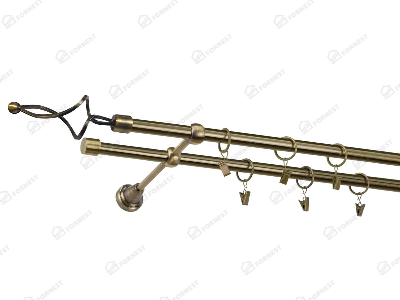 Dvojradová garniža s povrchovou úpravou - odtieň antik (matné zlato). Celokovové garniže s kvalitnou povrchovou úpravou - galvanické pokovovanie. Galvanické pokovovanie zabezpečuje vyššiu povrchovú tvrdosť, zvýšenú dolnosť voči poškriabaniu, hladký povrch. Dodávané sú v kompletoch.