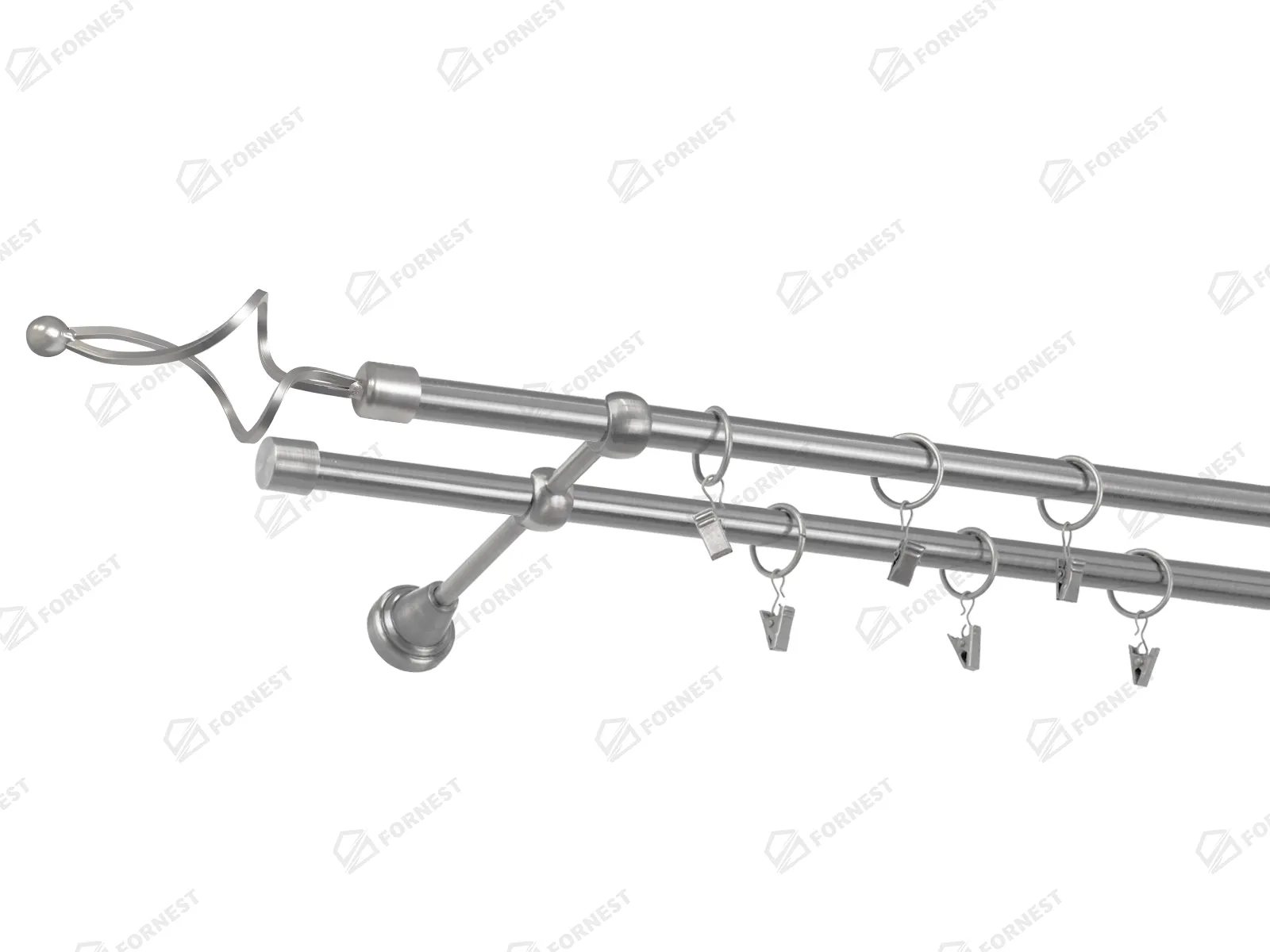 Dvojradová garniža s povrchovou úpravou - odtieň satin-nikel (matné striebro). Celokovové garniže s kvalitnou povrchovou úpravou - galvanické pokovovanie. Galvanické pokovovanie zabezpečuje vyššiu povrchovú tvrdosť, zvýšenú dolnosť voči poškriabaniu, hladký povrch. Dodávané sú v kompletoch.