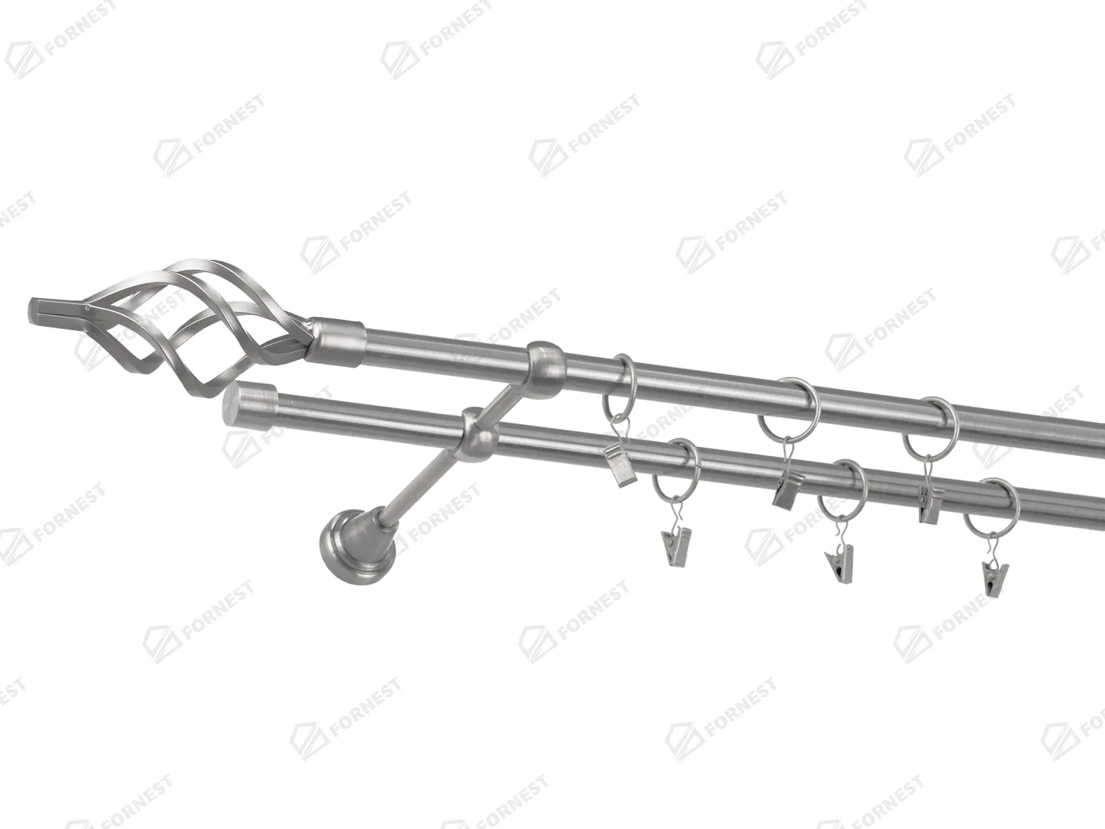 Dvojradová garniža s povrchovou úpravou - odtieň satin-nikel (matné striebro). Celokovové garniže s kvalitnou povrchovou úpravou - galvanické pokovovanie. Galvanické pokovovanie zabezpečuje vyššiu povrchovú tvrdosť, zvýšenú dolnosť voči poškriabaniu, hladký povrch. Dodávané sú v kompletoch.