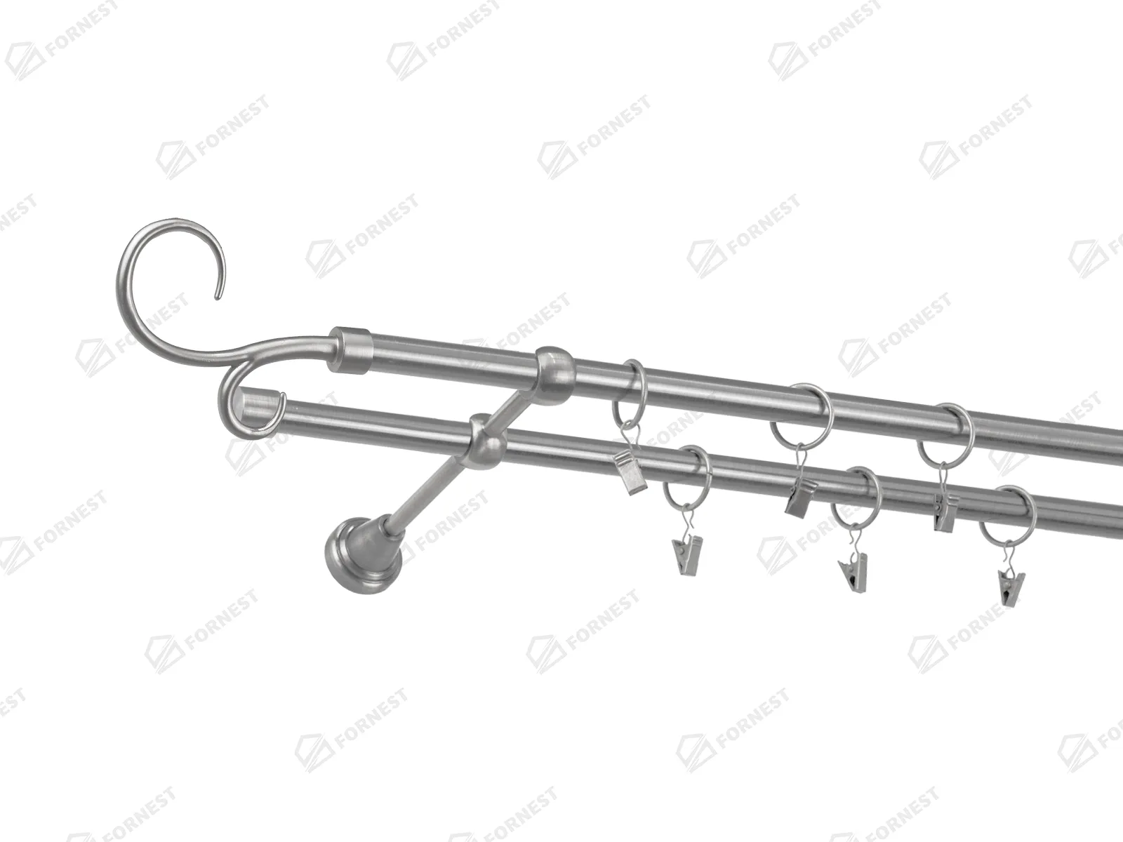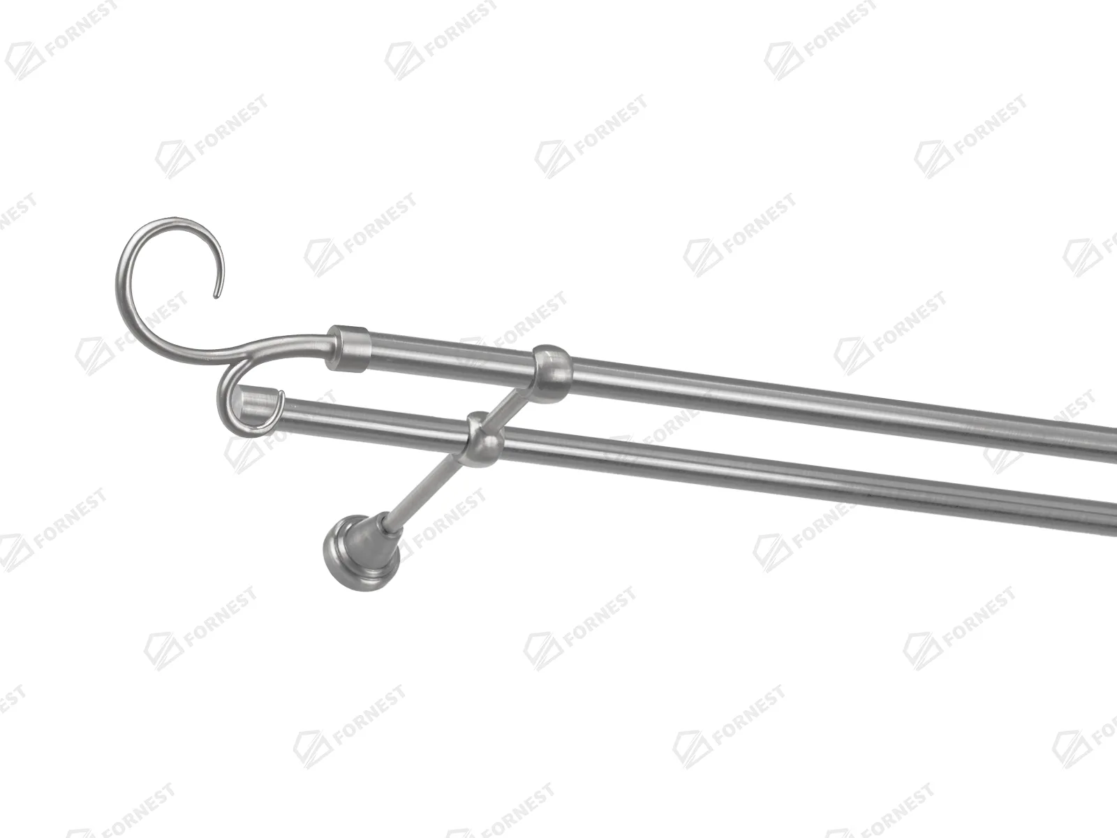 Dvojradová garniža s povrchovou úpravou - odtieň satin-nikel (matné striebro). Celokovové garniže s kvalitnou povrchovou úpravou - galvanické pokovovanie. Galvanické pokovovanie zabezpečuje vyššiu povrchovú tvrdosť, zvýšenú dolnosť voči poškriabaniu, hladký povrch. Dodávané sú v kompletoch.