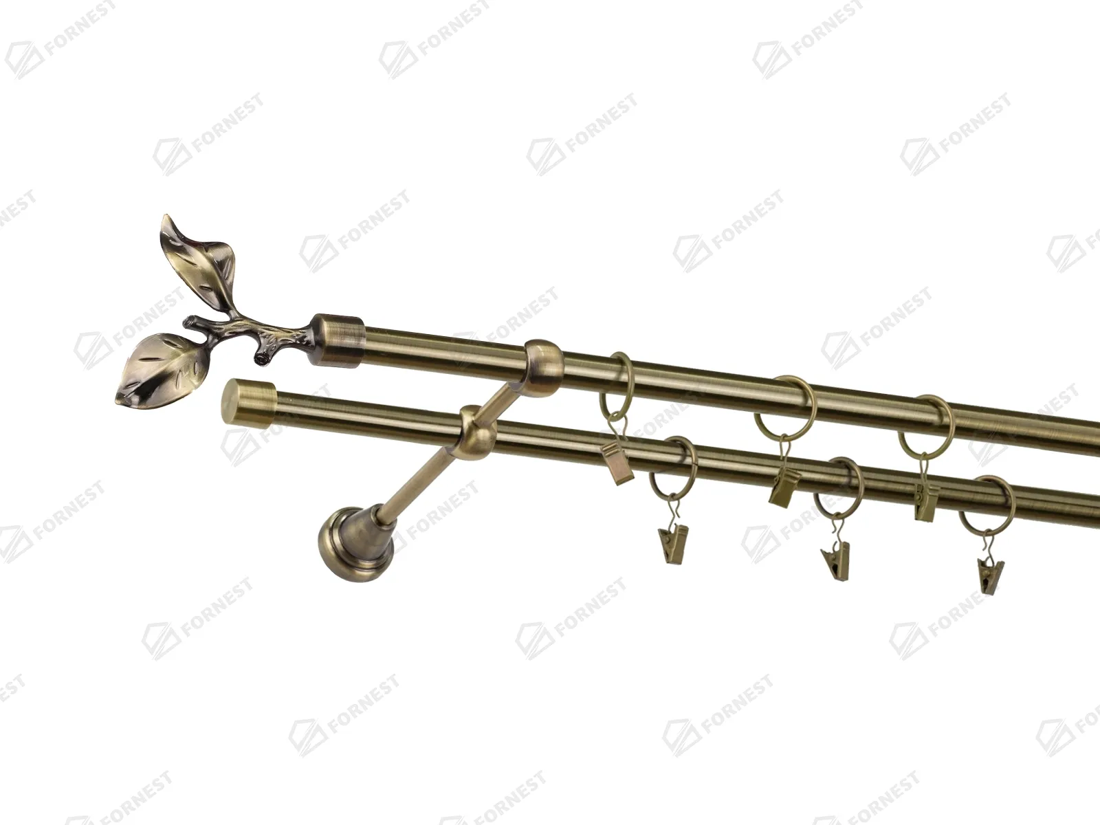 Dvojradová garniža s povrchovou úpravou - odtieň antik (matné zlato). Celokovové garniže s kvalitnou povrchovou úpravou - galvanické pokovovanie. Galvanické pokovovanie zabezpečuje vyššiu povrchovú tvrdosť, zvýšenú dolnosť voči poškriabaniu, hladký povrch. Dodávané sú v kompletoch.