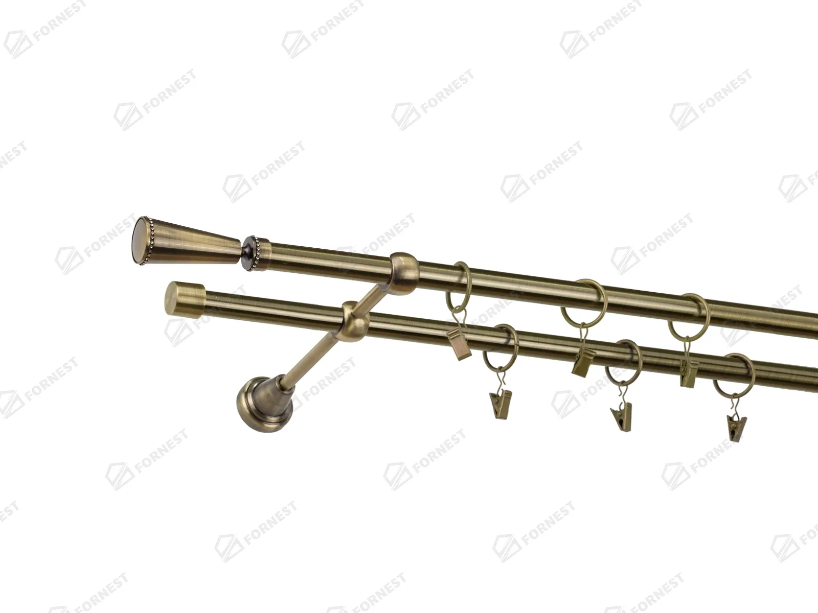 Dvojradová garniža s povrchovou úpravou - odtieň antik (matné zlato). Celokovové garniže s kvalitnou povrchovou úpravou - galvanické pokovovanie. Galvanické pokovovanie zabezpečuje vyššiu povrchovú tvrdosť, zvýšenú dolnosť voči poškriabaniu, hladký povrch. Dodávané sú v kompletoch.