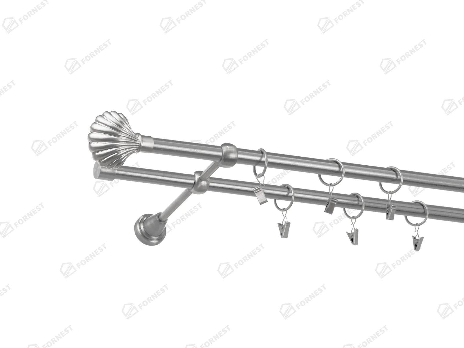 Dvojradová garniža s povrchovou úpravou - odtieň satin-nikel (matné striebro). Celokovové garniže s kvalitnou povrchovou úpravou - galvanické pokovovanie. Galvanické pokovovanie zabezpečuje vyššiu povrchovú tvrdosť, zvýšenú dolnosť voči poškriabaniu, hladký povrch. Dodávané sú v kompletoch.