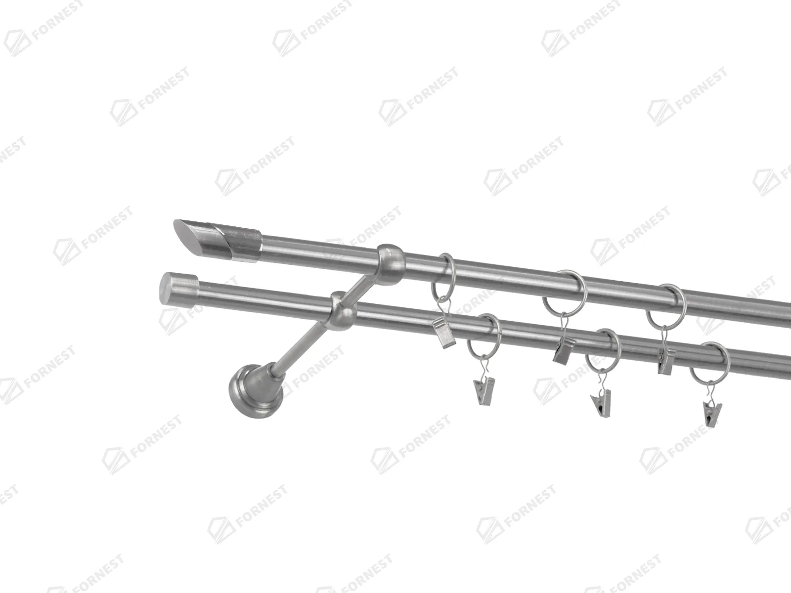 Dvojradová garniža s povrchovou úpravou - odtieň satin-nikel (matné striebro). Celokovové garniže s kvalitnou povrchovou úpravou - galvanické pokovovanie. Galvanické pokovovanie zabezpečuje vyššiu povrchovú tvrdosť, zvýšenú dolnosť voči poškriabaniu, hladký povrch. Dodávané sú v kompletoch.