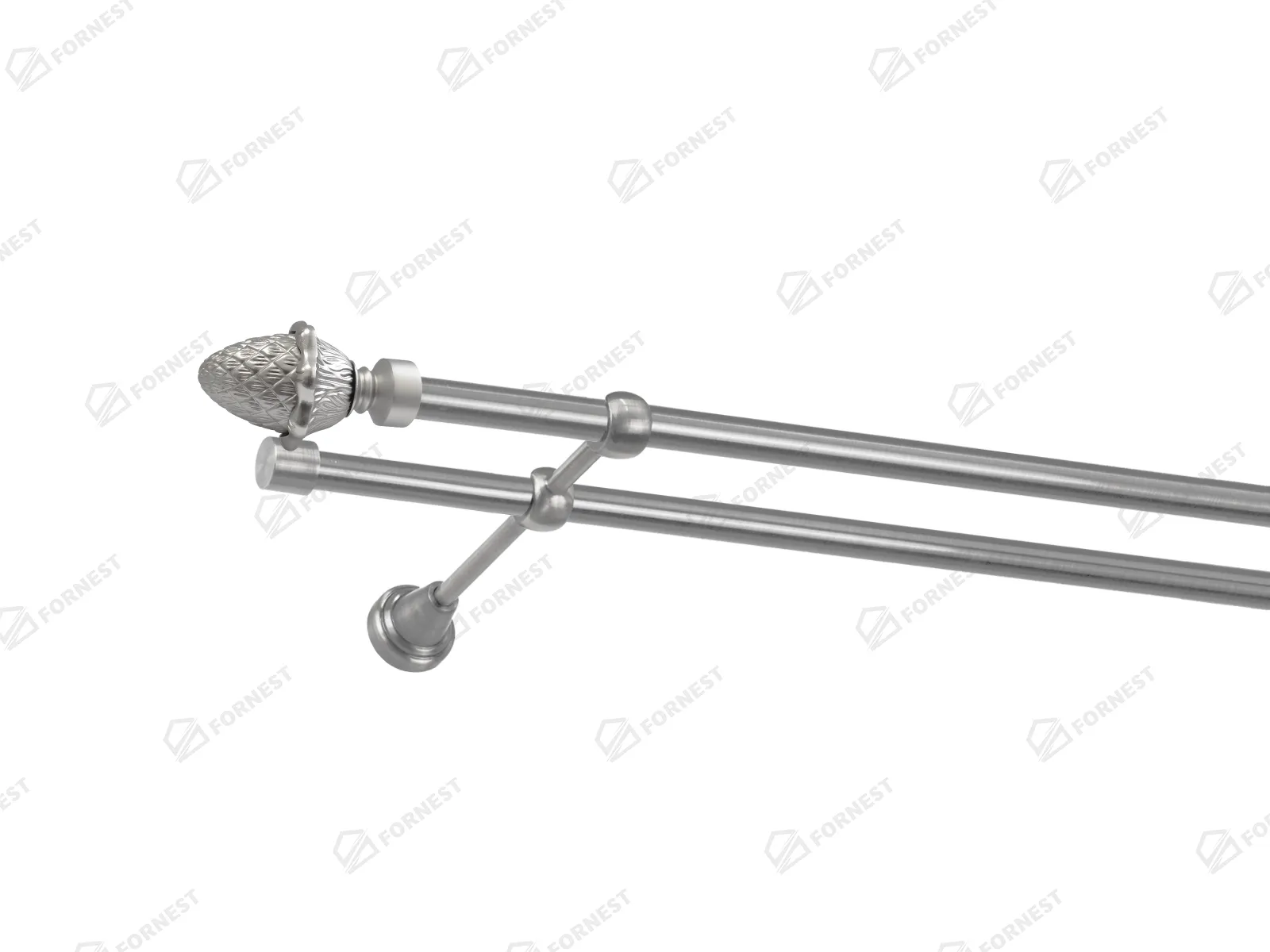 Dvojradová garniža s povrchovou úpravou - odtieň satin-nikel (matné striebro). Celokovové garniže s kvalitnou povrchovou úpravou - galvanické pokovovanie. Galvanické pokovovanie zabezpečuje vyššiu povrchovú tvrdosť, zvýšenú dolnosť voči poškriabaniu, hladký povrch. Dodávané sú v kompletoch.