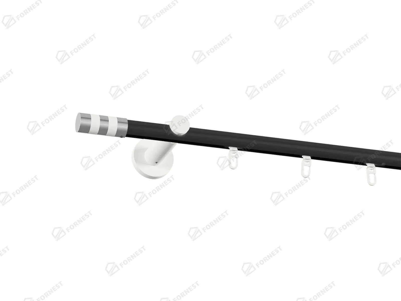 Dĺžka 1600 mm - tyč 19mm - 1600mm - 1ks, držiak - 2ks, koncovka - 2ks, krúžok so štipcom - 15ks (pri výbere parametra príslušenstvo s krúžkami so štipcom), skrutky a hmoždinky na montáž