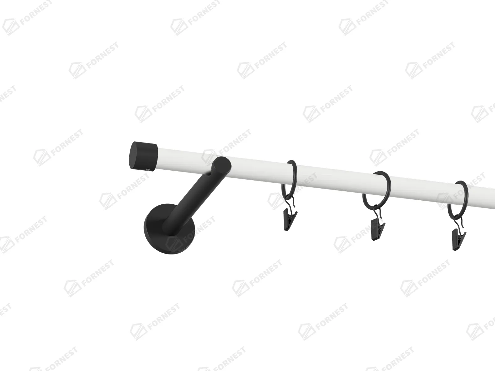 Dĺžka 1200 mm - tyč 19mm - 1200mm - 1ks, držiak - 2ks, koncovka - 2ks, krúžok so štipcom - 11ks (pri výbere parametra príslušenstvo s krúžkami so štipcom), skrutky a hmoždinky na montáž