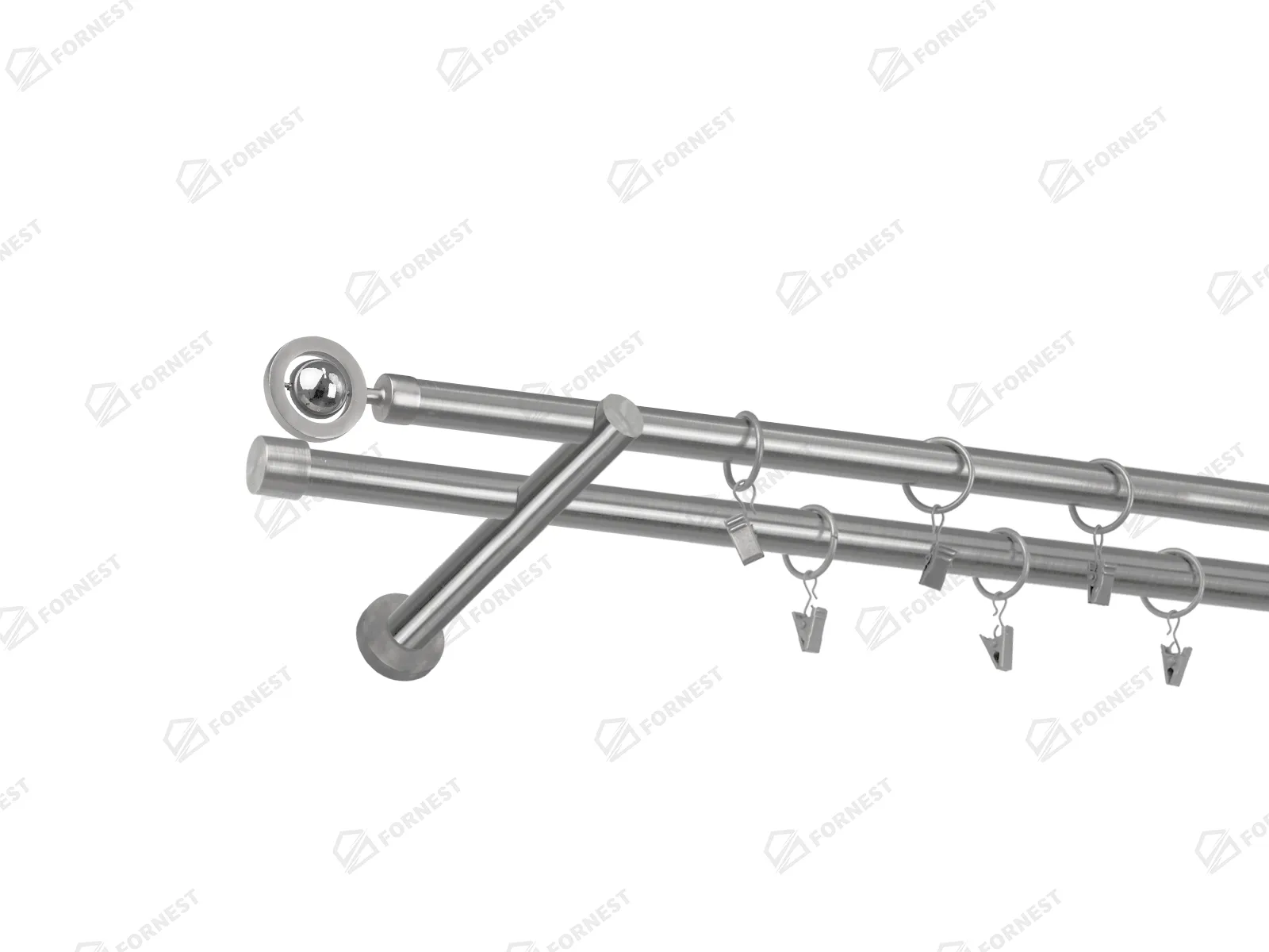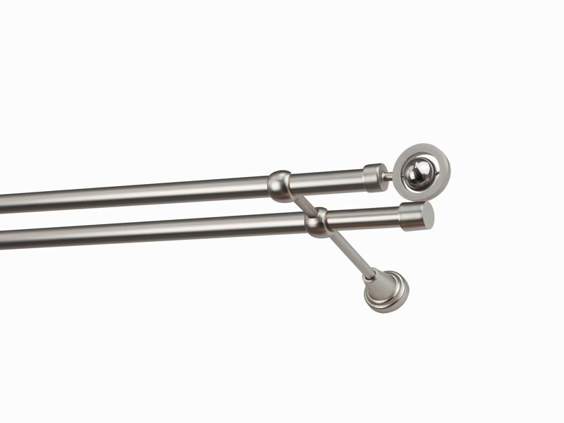Dvojradová garniža s povrchovou úpravou - odtieň satin-nikel (matné striebro). Celokovové garniže s kvalitnou povrchovou úpravou - galvanické pokovovanie. Galvanické pokovovanie zabezpečuje vyššiu povrchovú tvrdosť, zvýšenú dolnosť voči poškriabaniu, hladký povrch. Dodávané sú v kompletoch.