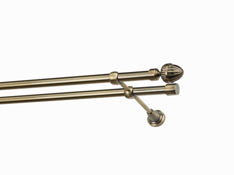 Dvojradová garniža s povrchovou úpravou - odtieň antik (matné zlato). Celokovové garniže s kvalitnou povrchovou úpravou - galvanické pokovovanie. Galvanické pokovovanie zabezpečuje vyššiu povrchovú tvrdosť, zvýšenú dolnosť voči poškriabaniu, hladký povrch. Dodávané sú v kompletoch.