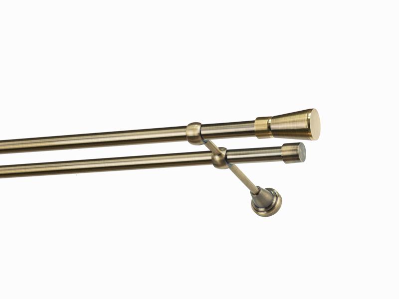 Dvojradová garniža s povrchovou úpravou - odtieň antik (matné zlato). Celokovové garniže s kvalitnou povrchovou úpravou - galvanické pokovovanie. Galvanické pokovovanie zabezpečuje vyššiu povrchovú tvrdosť, zvýšenú dolnosť voči poškriabaniu, hladký povrch. Dodávané sú v kompletoch.
