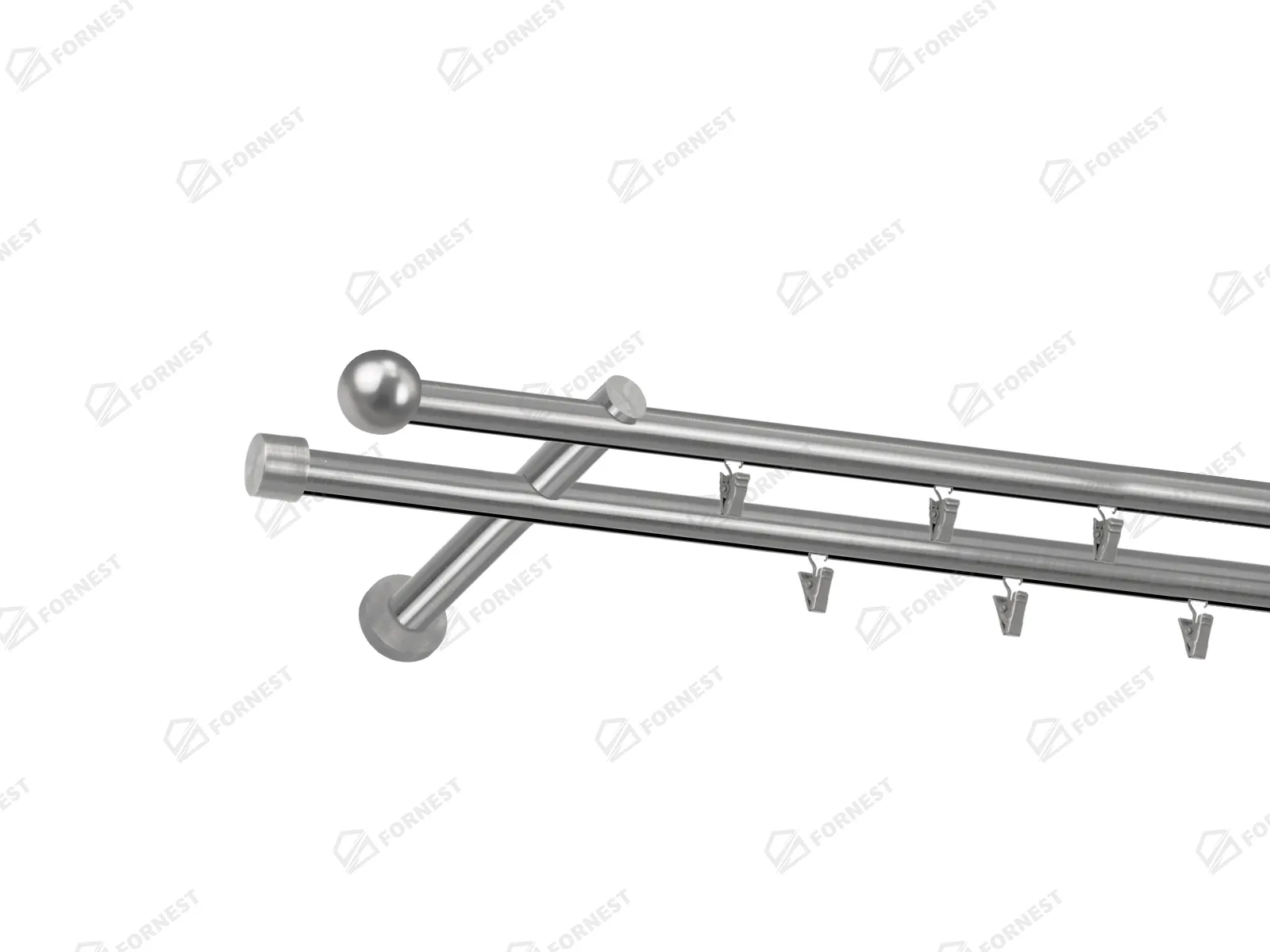 Dvojradová garniža s povrchovou úpravou - odtieň satin-nikel (matné striebro). Celokovové garniže s kvalitnou povrchovou úpravou - galvanické pokovovanie. Galvanické pokovovanie zabezpečuje vyššiu povrchovú tvrdosť, zvýšenú dolnosť voči poškriabaniu, hladký povrch. Dodávané sú v kompletoch.
