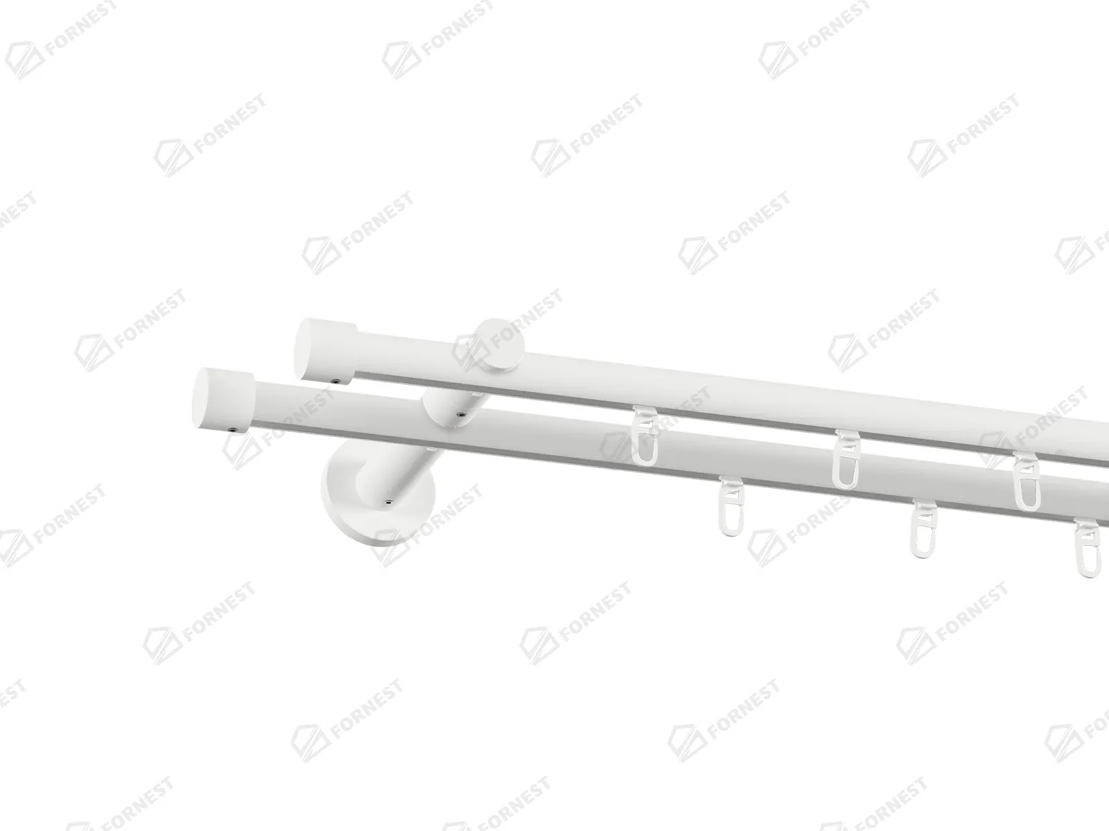 Dĺžka 1600 mm - tyč 16mm - 1600mm - 2ks, držiak dvojitý - 2ks, koncovka - 2ks, koncovka zadná(PULLO) - 2ks, krúžok so štipcom - 30ks (pri výbere parametra príslušenstvo s krúžkami so štipcom), skrutky a hmoždinky na montáž