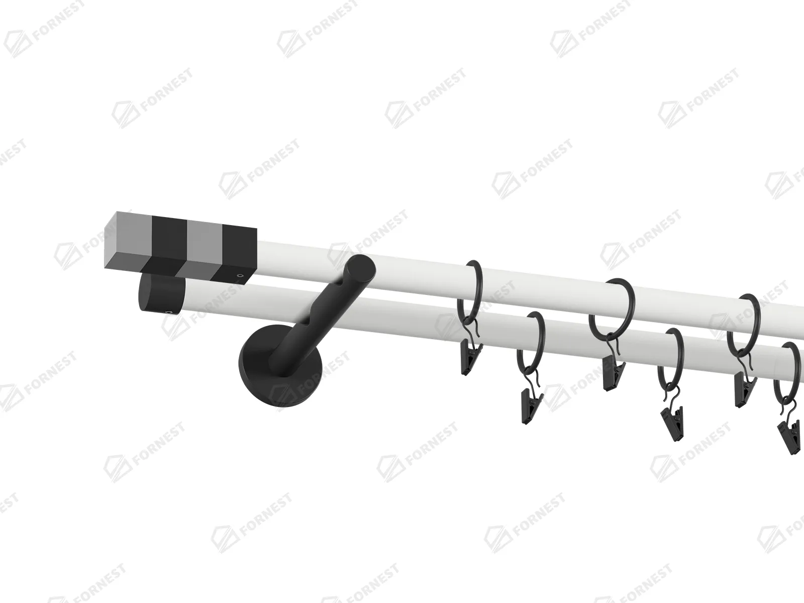 Dĺžka 1600 mm - tyč 19mm - 1600mm - 2ks, držiak dvojitý - 2ks, koncovka - 2ks, koncovka zadná(PULLO) - 2ks, krúžok so štipcom - 30ks (pri výbere parametra príslušenstvo s krúžkami so štipcom), skrutky a hmoždinky na montáž