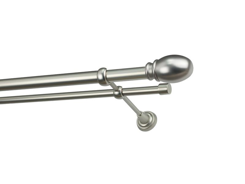 Dvojradová garniža s povrchovou úpravou - odtieň satin-nikel (matné striebro). Celokovové garniže s kvalitnou povrchovou úpravou - galvanické pokovovanie. Galvanické pokovovanie zabezpečuje vyššiu povrchovú tvrdosť, zvýšenú dolnosť voči poškriabaniu, hladký povrch. Dodávané sú v kompletoch.