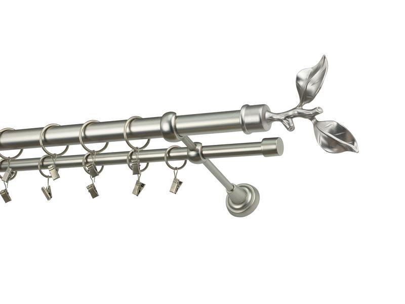 Dvojradová garniža s povrchovou úpravou - odtieň satin-nikel (matné striebro). Celokovové garniže s kvalitnou povrchovou úpravou - galvanické pokovovanie. Galvanické pokovovanie zabezpečuje vyššiu povrchovú tvrdosť, zvýšenú dolnosť voči poškriabaniu, hladký povrch. Dodávané sú v kompletoch.