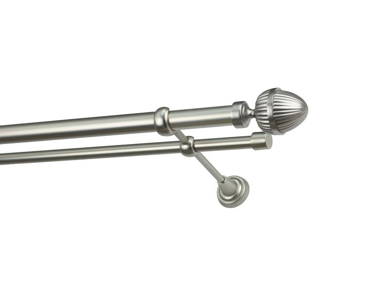 Dvojradová garniža s povrchovou úpravou - odtieň satin-nikel (matné striebro). Celokovové garniže s kvalitnou povrchovou úpravou - galvanické pokovovanie. Galvanické pokovovanie zabezpečuje vyššiu povrchovú tvrdosť, zvýšenú dolnosť voči poškriabaniu, hladký povrch. Dodávané sú v kompletoch.