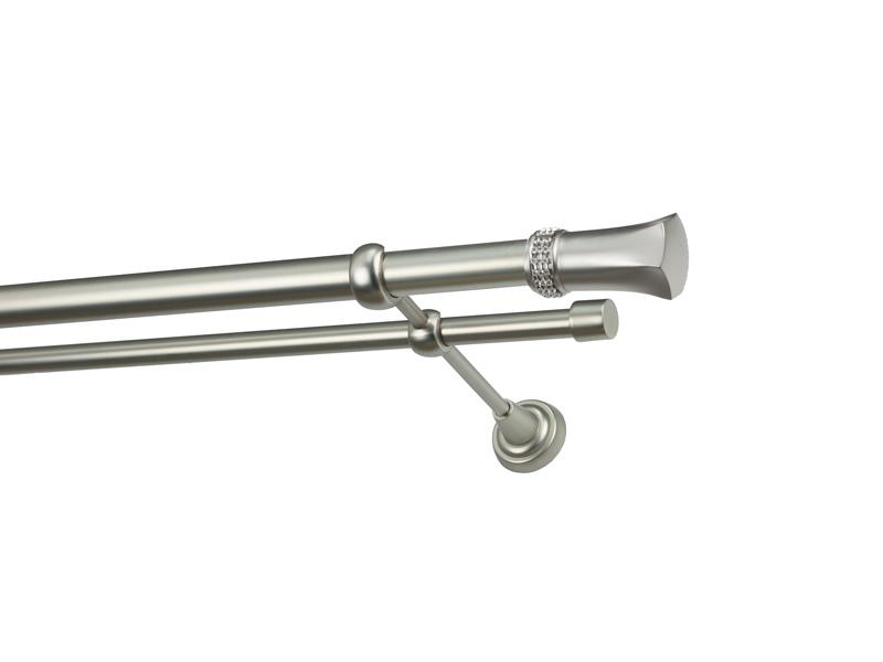 Dvojradová garniža s povrchovou úpravou - odtieň satin-nikel (matné striebro). Celokovové garniže s kvalitnou povrchovou úpravou - galvanické pokovovanie. Galvanické pokovovanie zabezpečuje vyššiu povrchovú tvrdosť, zvýšenú dolnosť voči poškriabaniu, hladký povrch. Dodávané sú v kompletoch.