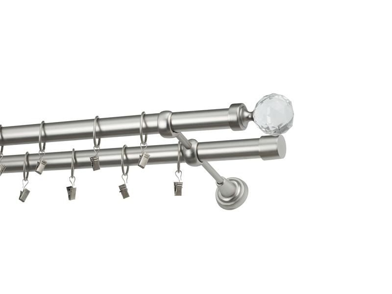 Dvojradová garniža s povrchovou úpravou - odtieň satin-nikel (matné striebro). Celokovové garniže s kvalitnou povrchovou úpravou - galvanické pokovovanie. Galvanické pokovovanie zabezpečuje vyššiu povrchovú tvrdosť, zvýšenú dolnosť voči poškriabaniu, hladký povrch. Dodávané sú v kompletoch.