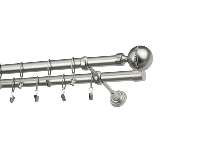 Dvojradová garniža s povrchovou úpravou - odtieň satin-nikel (matné striebro). Celokovové garniže s kvalitnou povrchovou úpravou - galvanické pokovovanie. Galvanické pokovovanie zabezpečuje vyššiu povrchovú tvrdosť, zvýšenú dolnosť voči poškriabaniu, hladký povrch. Dodávané sú v kompletoch.