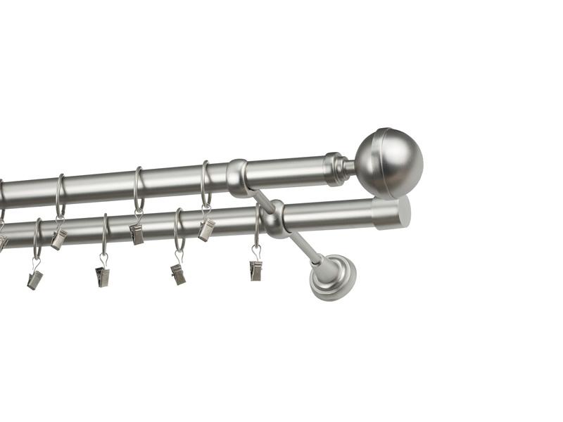 Dvojradová garniža s povrchovou úpravou - odtieň satin-nikel (matné striebro). Celokovové garniže s kvalitnou povrchovou úpravou - galvanické pokovovanie. Galvanické pokovovanie zabezpečuje vyššiu povrchovú tvrdosť, zvýšenú dolnosť voči poškriabaniu, hladký povrch. Dodávané sú v kompletoch.