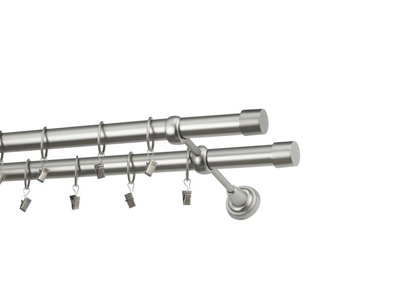 Dvojradová garniža s povrchovou úpravou - odtieň satin-nikel (matné striebro). Celokovové garniže s kvalitnou povrchovou úpravou - galvanické pokovovanie. Galvanické pokovovanie zabezpečuje vyššiu povrchovú tvrdosť, zvýšenú dolnosť voči poškriabaniu, hladký povrch. Dodávané sú v kompletoch.