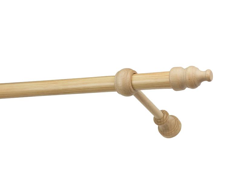 Koncovky, držiaky a krúžky sú drevené. Tyč je drevená (vyrábaná technológiou ako europrofily pre okna - čo eliminuje ohýbanie vplyvom tepla) a je potiahnutá odolnou drevoimitačnou fóliou. Dodávané sú v kompletoch.