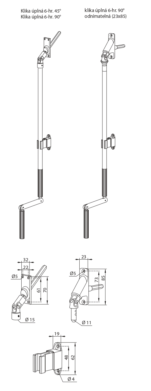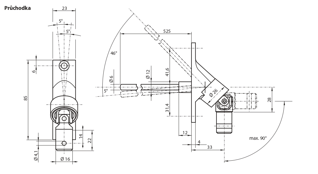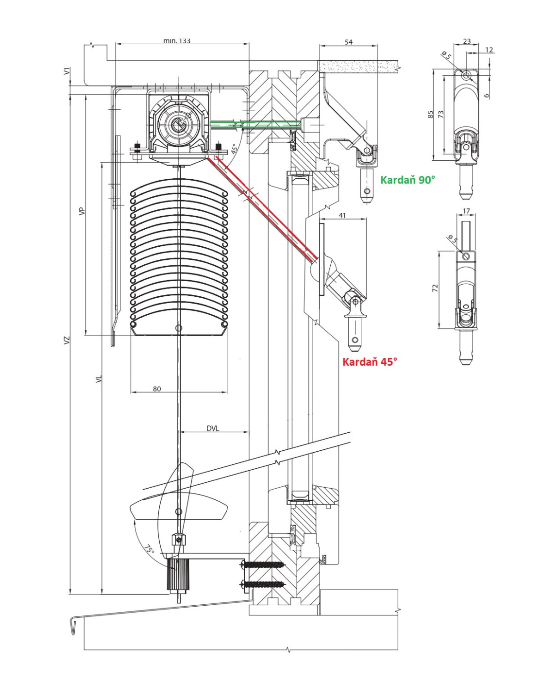Zošikmenie kardaňu (45°/90°) voľte vždy podľa toho, ako bude priechodka vedená cez konštrukciu do prevodovky žalúzie !