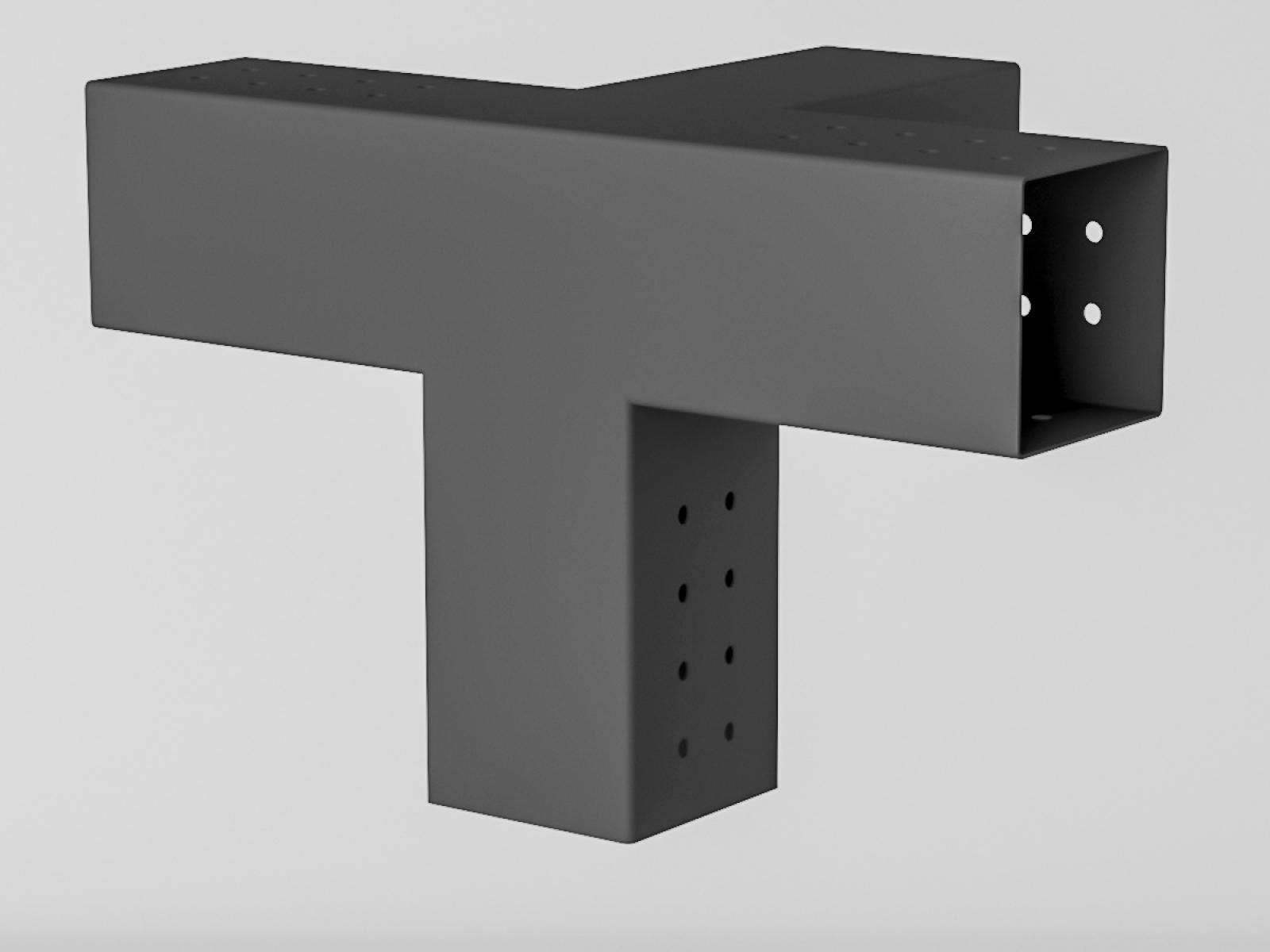 Oceľový uzlový prvok pre hranoly o priereze 98x98mm. Slúži na spájanie hranolov pre pergoly VEGAS. Je vyrobený so zváraného pozinkovaného plechu hrúbky 2mm, s práškovou povrchovou úpravou - farba čierna.