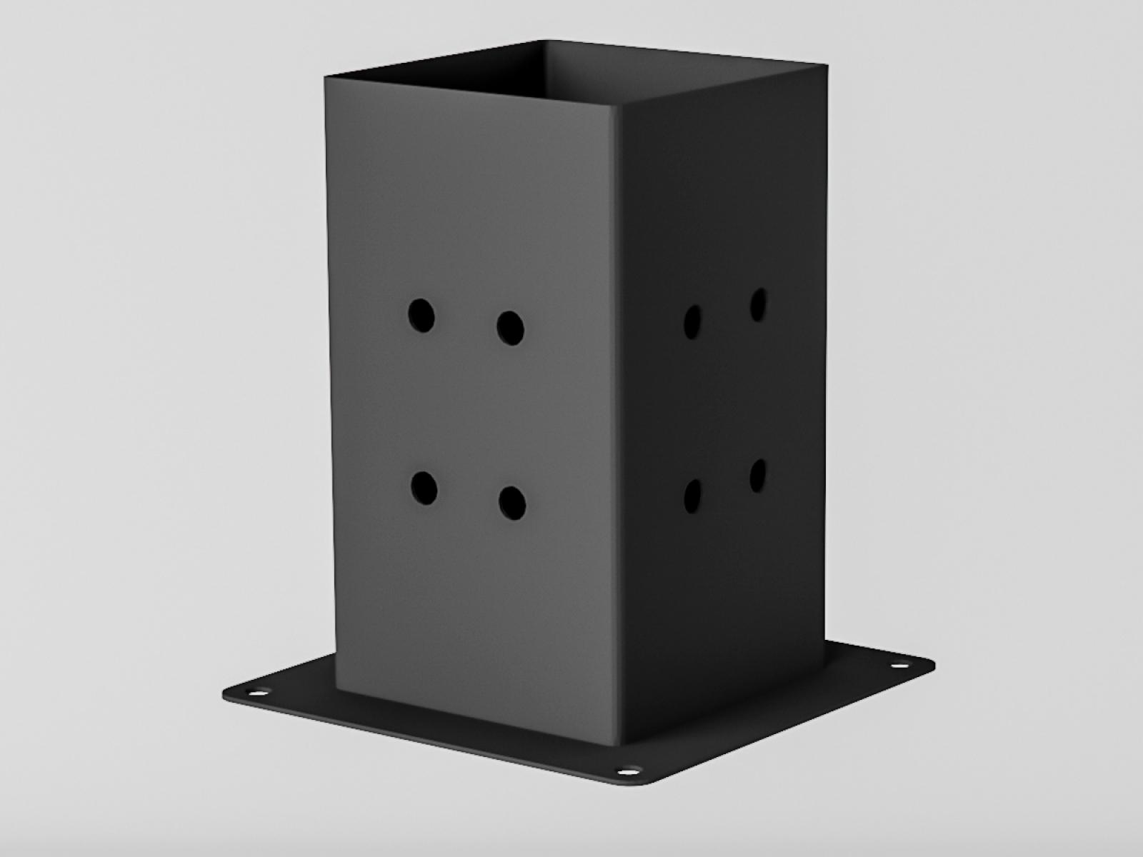 kovania sú povrchovo upravené čiernou práškovou farbou,. Sú to zvárané dielce z pozinkovaného plechu, hrúbka materiálu 2mm s predvŕtanými otvormi. Vnútorný rozmer pre hranol je 98x98mm, čo poskytuje vysokú tuhosť celej konštrukcie.