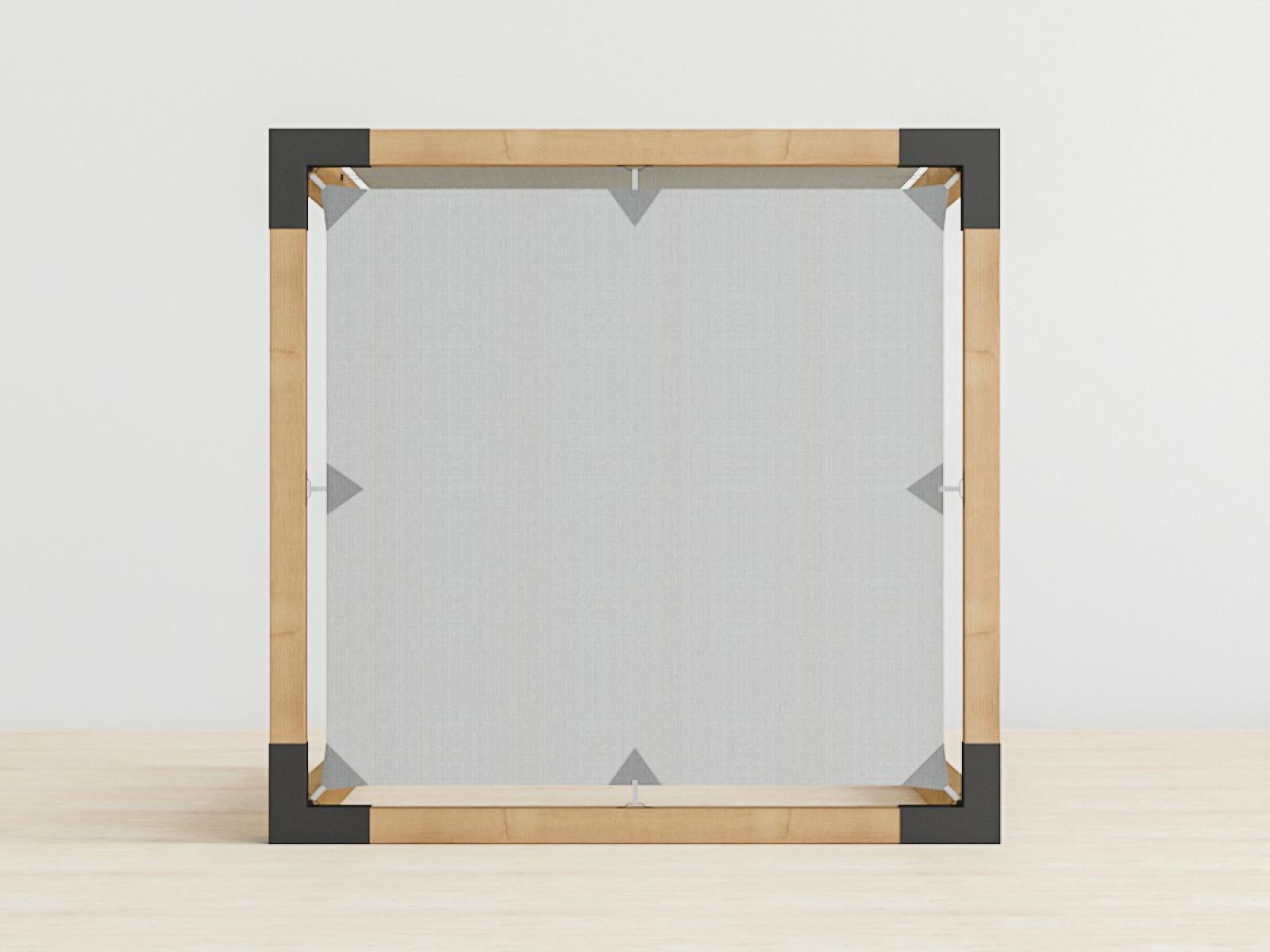 - Podľa roztiahnutej plachty v miestach upínacích praciek na plachte priskrutkujte na hranol priame upínače plachty.