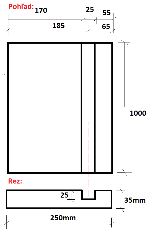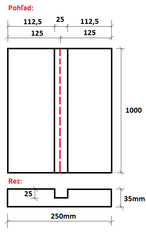 drážka 25x25, Poznámka: stred drážky 125