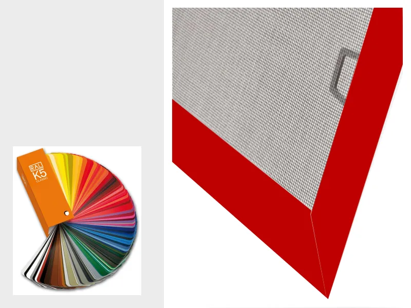 Sieťky proti hmyzu - pevné na OKNO - vo farbe RAL sú dodatočne povrchovo upravované práškovým lakovaním podľa medzinárodného vzorkovníka farieb RAL. Vo zvolenej farbe sú dodávané hliníkové profily a uchytávacie zvrtlíky. Bližšie o farbách RAL najdete tu.