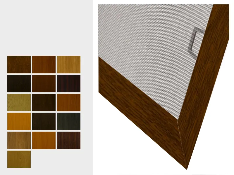 Sieťky proti hmyzu v úprave s renolitovou fóliou sú vyrábané z hliníkového profilu, ktoré sú potiahnuté drevoimitačnou fóliou, ktorá sa používa aj pri výrobe plastových okien. Zobrazené farby sú závislé od nastavenia vášho zobrazovacieho zariadenia a môžu sa líšiť od skutočnosti.